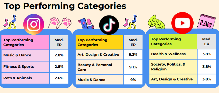 Como eles usam outra definição de microinfluenciador (até 50 mil, e não 100 mil seguidores) os dados são distintos dos brasileiros disponíveis, mas ainda chamam atenção: 95.4 % dos criadores no Instagram são microinfluenciadores, 91,5% no TikTok e 85,5% no YouTube.